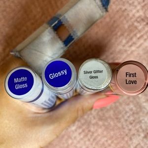 Brand new never lipsense in the shade first love and comes with the silver glitter gloss, the glossy gloss, and the matte gloss