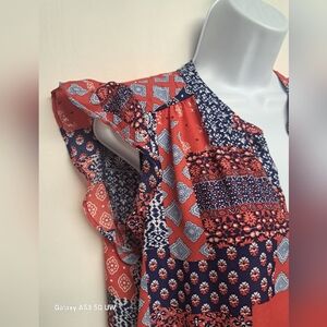 Lipslide Pullover Blouse Top V Neck Ruffled Cap Sleeve L