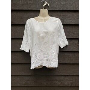 Lipslide White Embroidered cut-outs blouse buttons at back 100% cotton size M