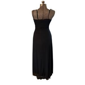 Lipstick Black Beaded Maxi Dress S Spaghetti Straps Y2K Formal Gown Whimsygoth
