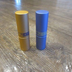 A sunny duo that suits everyone. The perfect nude and the perfect peachy coral in a surprising package guaranteed to make you smile and look gorgeous. Layer over each other or wear alone... whatever you choose, you can't go wrong with these two. Light up your face and your day. New in box!! Note: The only boxes i have left have some minor damage but the lipstick is in brand new condition.