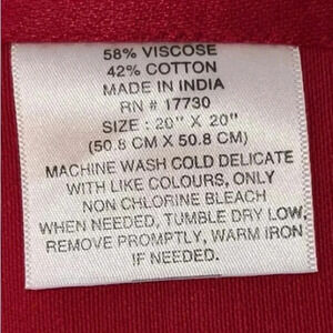 Beautiful, sheen, lipstick red cloth napkins NWOTs Cotton blend. Set of 4 dinner napkins are perfect for everyday meals or casual gatherings. Solid Red design makes it easy to mix and match, or pair the set with a wide range of tableware. Coordinate with contrasting colors or rich patterns for runner and placemats, in order to add depth and dimension to the table décor.