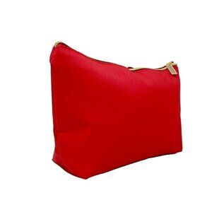 The classic lipstick red is applied to this vibrant vegan leather cosmetic bag. You'll never forget where you've placed your items in this eyecatching case.