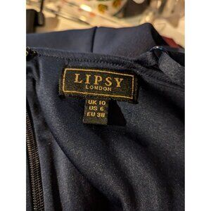 Lipsy London US 6 Floral Embroidered Navy Off-Shoulder Dress bodycon party
