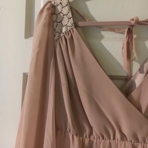 Beautiful and flattering light pink/nudish mini dress with beading detail at shoulders! Great condition!