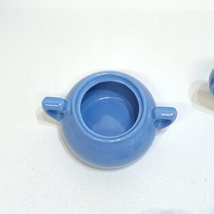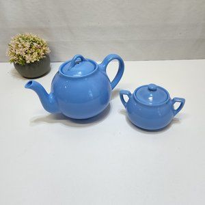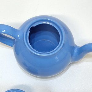 This charming tea set by Hall China for Lipton Tea in the 1940s includes a glossy blue teapot and matching sugar bowl.