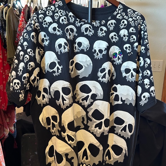 Liquid Blue AOP Skull Graphic T-Shirt | 2XL | Black Gothic Tee