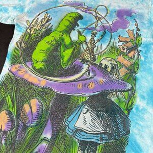 You are purchasing Liquid Blue Alice In Wonderland Shirt Adult Small Blue Tie Dye Mega Print Short Sleeve Tee