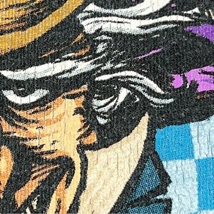 Good preowned condition. Graphic is cracking slightly and there is one tiny pinhole in the back by the collar. Please see all pictures before purchasing