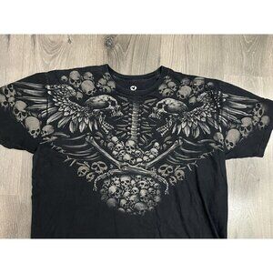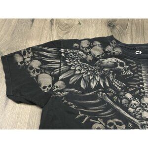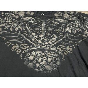 Liquid Blue Flying Skulls 2008 Mens XL Black Skull Guitar Skeleton Y2k Metal