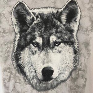 Liquid Blue Gray Tie-dye Wolf T-Shirt Men's Size Large Short-Sleeve Graphic Tee