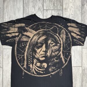 Liquid Blue Men's T Shirt Native American Dream Catcher Wolf & Eagle 2008 Size M