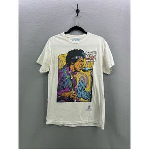 Liquid Blue Mens White Jimi Hendrix Pop Art Graphic Print T-Shirt Size Medium