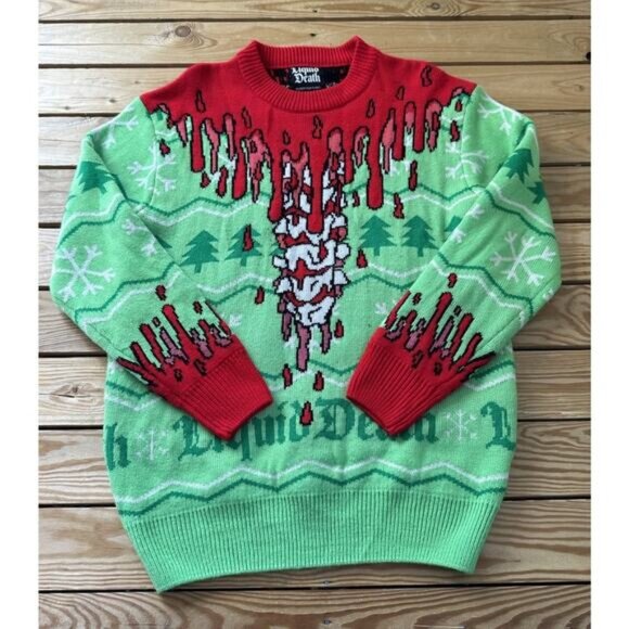 Liquid Death Men’s Green Red Graphic Sweater Size Large