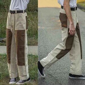 Liquid Lagoon Men's Canvas Denim Jean Green Patchwork Carpenter Colorblock Pants in great condition!