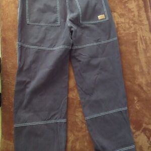 Liquid Lagoon Men’s Skater Wide Leg Rigid Work Jeans Black White Stitch 38x28