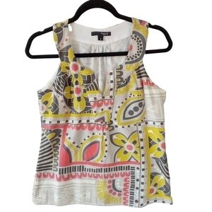 Liquid Silk Blend Floral Tank Top Women Size 2 XS Geometric Lightweight USA Made