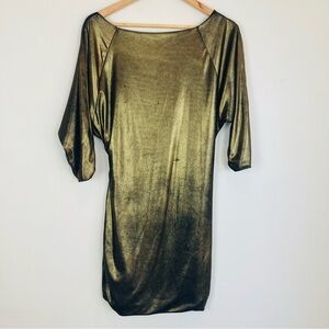 Liquid gold metallic dolman sleeve mini dress. Rachel by Rachel Roy. Sz M