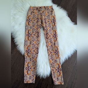 Liquido Orange Pink Purple Floral Leggings S Small High Rise Waisted