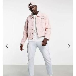 Liquor N Poker Men's Sz M Pink 90s Distressed Oversized Denim Jacket $75