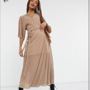 Liquorish Maxi Crinkled Wrap Dress Beige NWT Sz 8 Polyester Short Sleeve