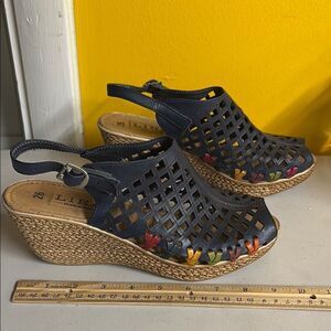 Step into elegance with Lira's blue wedge sandals, featuring a stylish slingback strap and a comfortable wedge heel. The vibrant blue color adds a chic touch to any outfit, making these shoes perfect for both casual and formal occasions. Enjoy the open toe design that offers a breezy feel and a modern look.