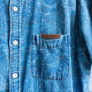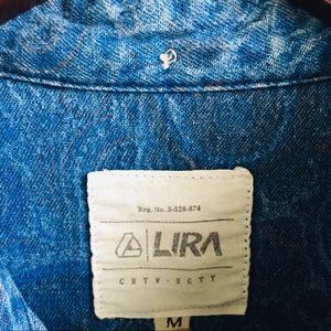 Lira shirt that still has a lot of life left. It’s such a unique, retro shirt and looks very vintage. Sized Medium but could fit a slim Large and looks great as an oversized Small. Pairs great