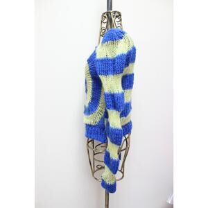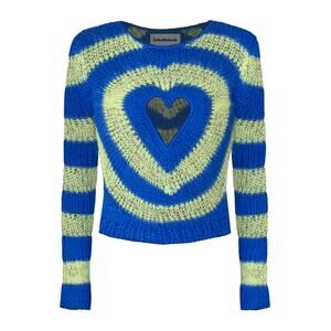 Lirika Matoshi Blue Yellow Radiant Heart Cutout Crochet Knit Fuzzy Sweater XL