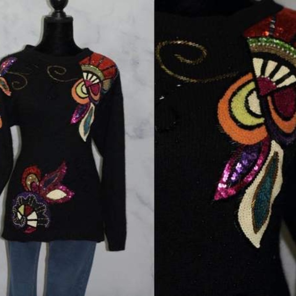 Lisa Ashley Original Black Silk Wool Sequenced Swe