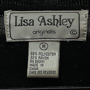 Vintage Lisa Ashley Originals Women's 2 Piece Long Sleeve Sweater & Slack in black, size M, is a stylish and elegant outfit perfect for a party or cocktail event. The sweater features a solid Strip pattern, long sleeves, and a round neckline for a classic look. Made from a blend of polyester and rayon, that has a sheer look(see through). This pullover sweater is designed by Lisa Ashley and is ideal for the winter and fall seasons. The set includes a matching slack for a coordinated and chic ensemble. Made in China, this designer piece is sure to make a statement. In very good condition. No Stains, Holes or Tears.