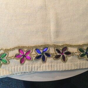 Lisa Ashley White Floral Ladies Bedazzled sweater Vintage size: M