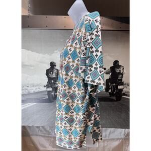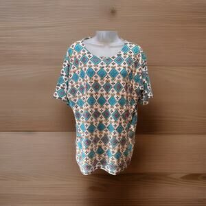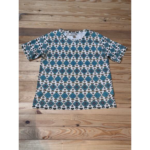 Lisa Ashley Woman's Blouse Top Blue Beaded Short Sleeve Round Neck