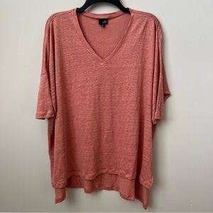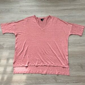 Lisa Bayne 100% Linen V-Neck Dolman Top Beach Cruise Vacation Boxy Pink Sz S