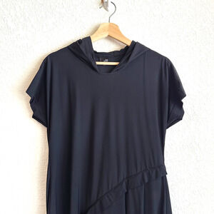 Lisa Bayne Midi Asymmetrical Dress Small Layered Hooded Tech Modern Minimalist