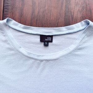 Lisa Bayne Short Sleeve Top Bamboo Cotton Baby Blue Designer Casual Luxury Sz S