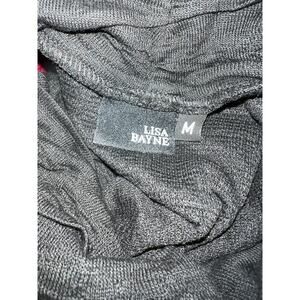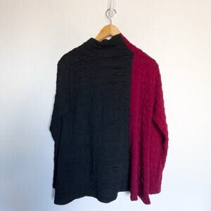 Lisa Bayne Top Shirt Medium Asymmetrical Color Clock Crinkle Button Red Black Cowl