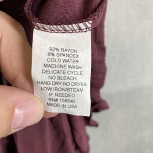 Lisa Bayne Tunic Shirt Womens Small Burgundy Asymmetrical Hem 3/4 Sleeve Made USA