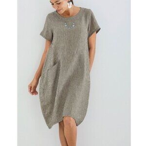 Lisa Bayne Women's Size S Black Stripe Woven Linen Shift Dress Lagenlook Artisan