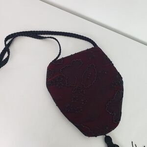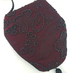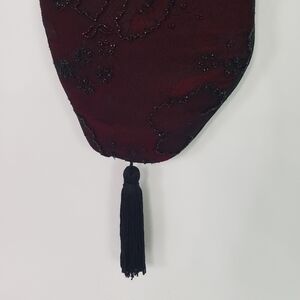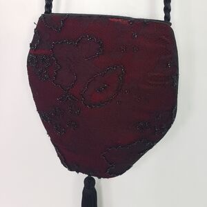 Lisa Brett unique red velvet beaded lace tassel shoulder bag evening bag