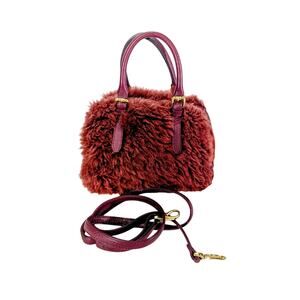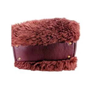 Authentic Lisa Conte handbag made in Italy. Crafted from genuine burgundy leather and matching burgundy shearling with gold hardware. Features double handles, zip closure, interior zip and slip pockets, and detachable strap. Clean interior with a faint natural color variation near the lining that matches the leather tone. Excellent pre-owned condition with minimal wear, soft shearling, and well-maintained structure.