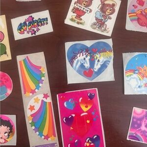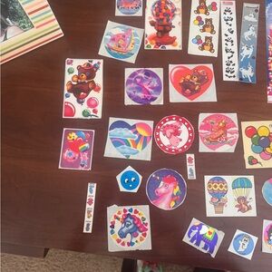 Bright and playful Lisa Frank stickers. Features unicorns, rainbows, and balloons. Perfect for decorating and crafting.