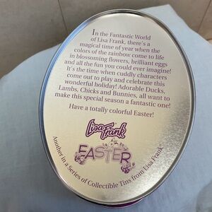 Lisa Frank collectible easter Colorful Cat Bunny chick lamb butterfly oval Tin