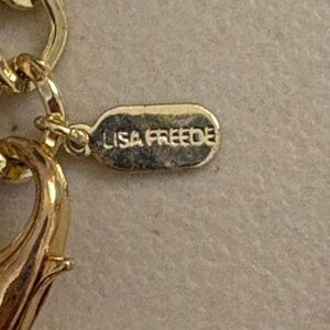 Stylish chunky gold chain necklace with name plate by Lisa Freede. Perfect for any occasion.
