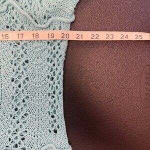 Lisa International Aqua Open-Knit Cardigan Sweater Sz Large Crochet Cottagecore