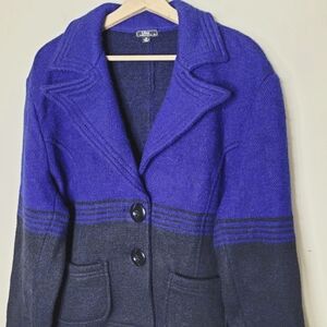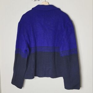 Lisa International Boiled Wool Blazer Jacket XL | Colorblock Blue Black 2-Button