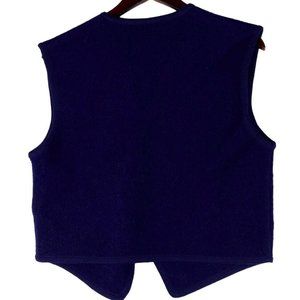 Lisa International Large 12 14 Vest Boiled Wool Leaves Autumn Fall Appliqué Blue