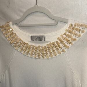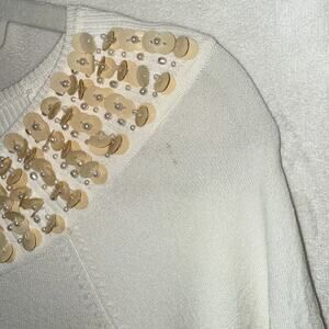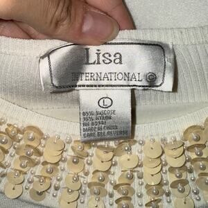 Lisa International Vintage Beaded Short Sleeve Sweater Size Large Ivory Pearls