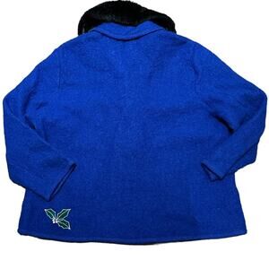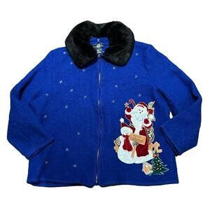 Lisa International Women’s 2X Royal Blue Boiled Wool Zip Jacket w/ Santa Clause