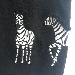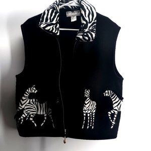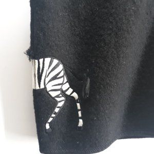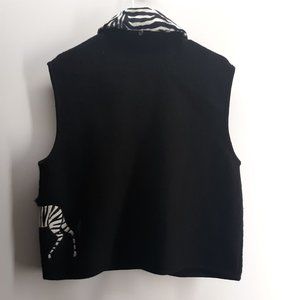 Lisa International Womens Large Black Zebra Removable Collar Full Zip Vest 100% Boiled Wool