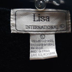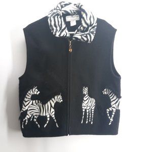 Lisa International Womens Size Large 100% Boiled Wool Full Zip Black Zebra Vest